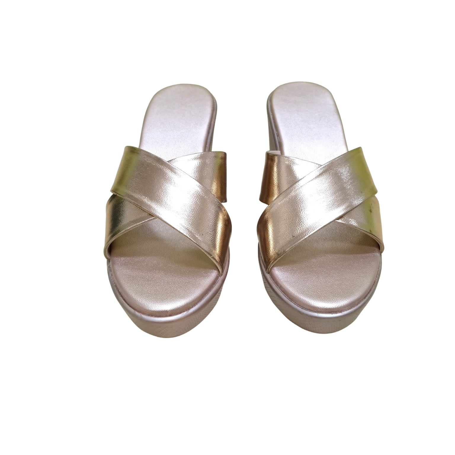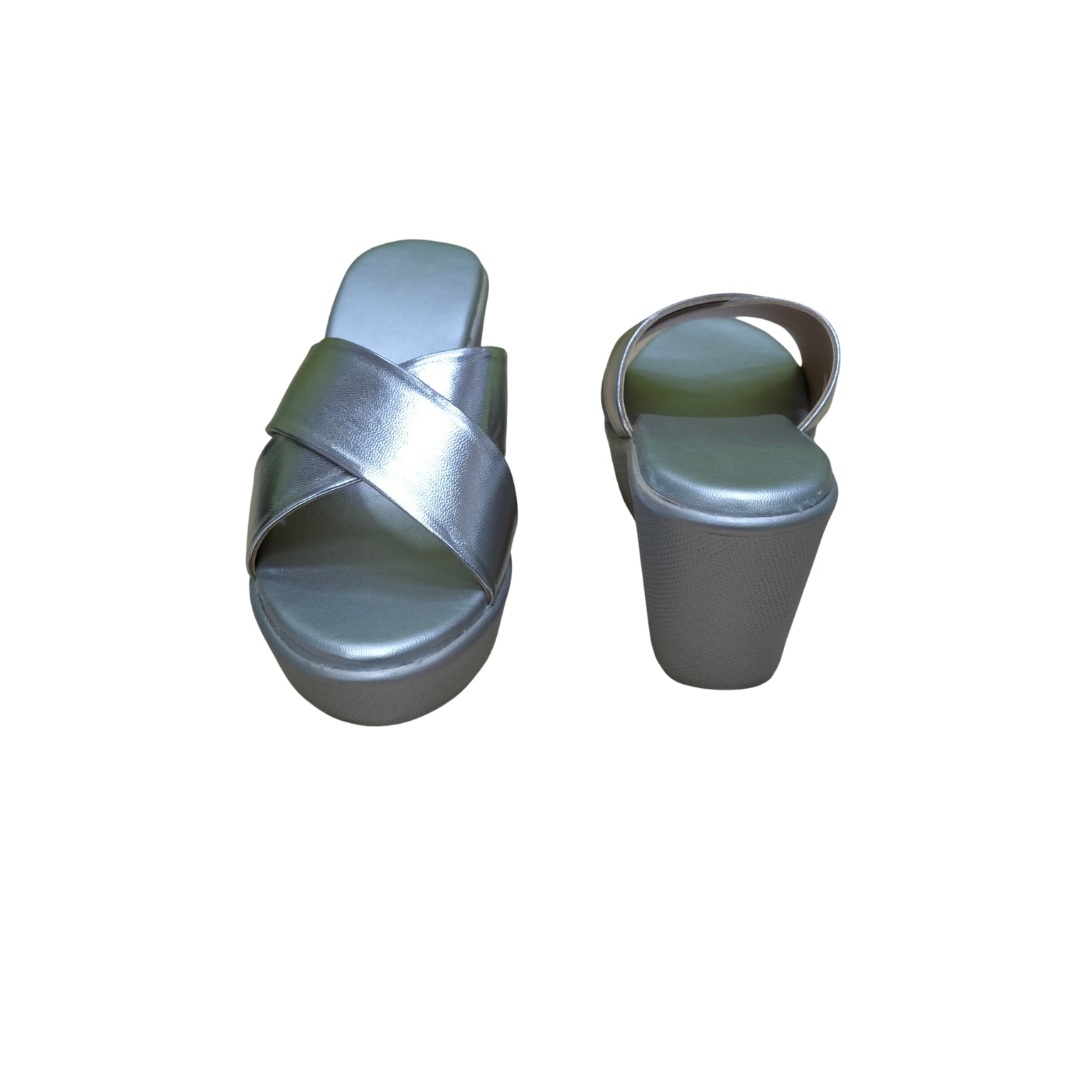 This statement wedge features bold, cross-over straps in a liquid-silver metallic finish that brilliantly catches the light, offering a sophisticated edge to your ensemble. Engineered for the dynamic Indian lifestyle, the seamless platform provides an elegant lift without compromising on stability, while the signature ultra-plush footbed ensures you move with effortless grace from high-powered daytime events to moonlit evening soirées. Whether you are pairing them with a sleek contemporary saree or a tailored evening gown, these wedges deliver a refined, high-shine luxury that feels as empowering as it looks.