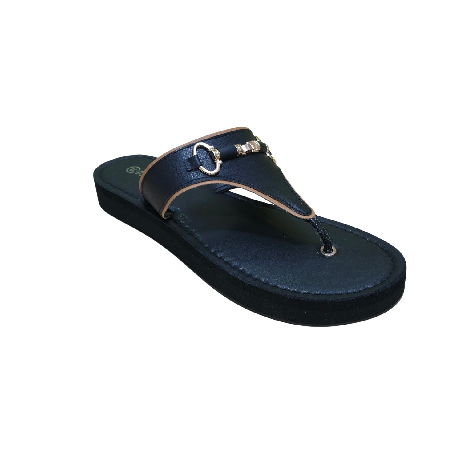 This sophisticated T-strap slide features a rich, matte onyx finish accented by a polished gold-tone bit, offering a timeless aesthetic that commands attention through quiet elegance. Crafted with a sleek, low-profile platform for a subtle yet authoritative lift, the design is perfected with our signature deep-contour cushioning to ensure you move through your day with unparalleled ease. From a high-powered morning at the office to an intimate evening soirée, these sandals serve as an artisanal statement piece, effortlessly bridging the gap between professional precision and understated festive grace.