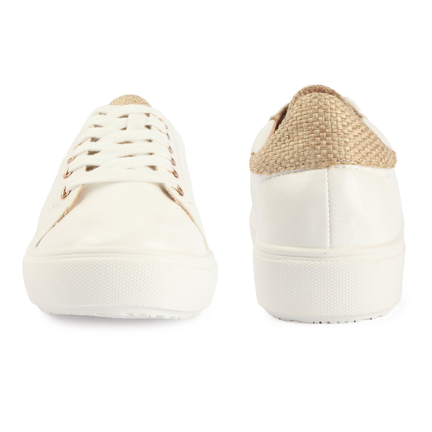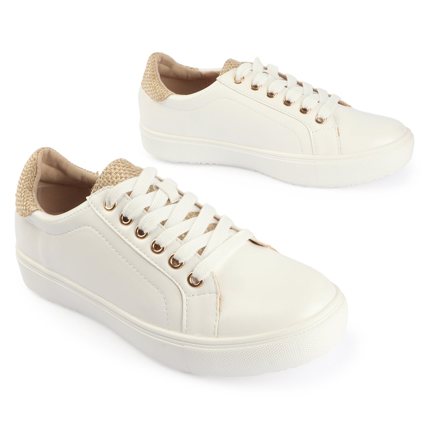 Designed for effortless sophistication, these beige platform sneakers bring together minimal aesthetics and elevated comfort. The smooth premium upper is beautifully complemented by a textured heel panel and refined gold-tone eyelets, adding a subtle luxe appeal.