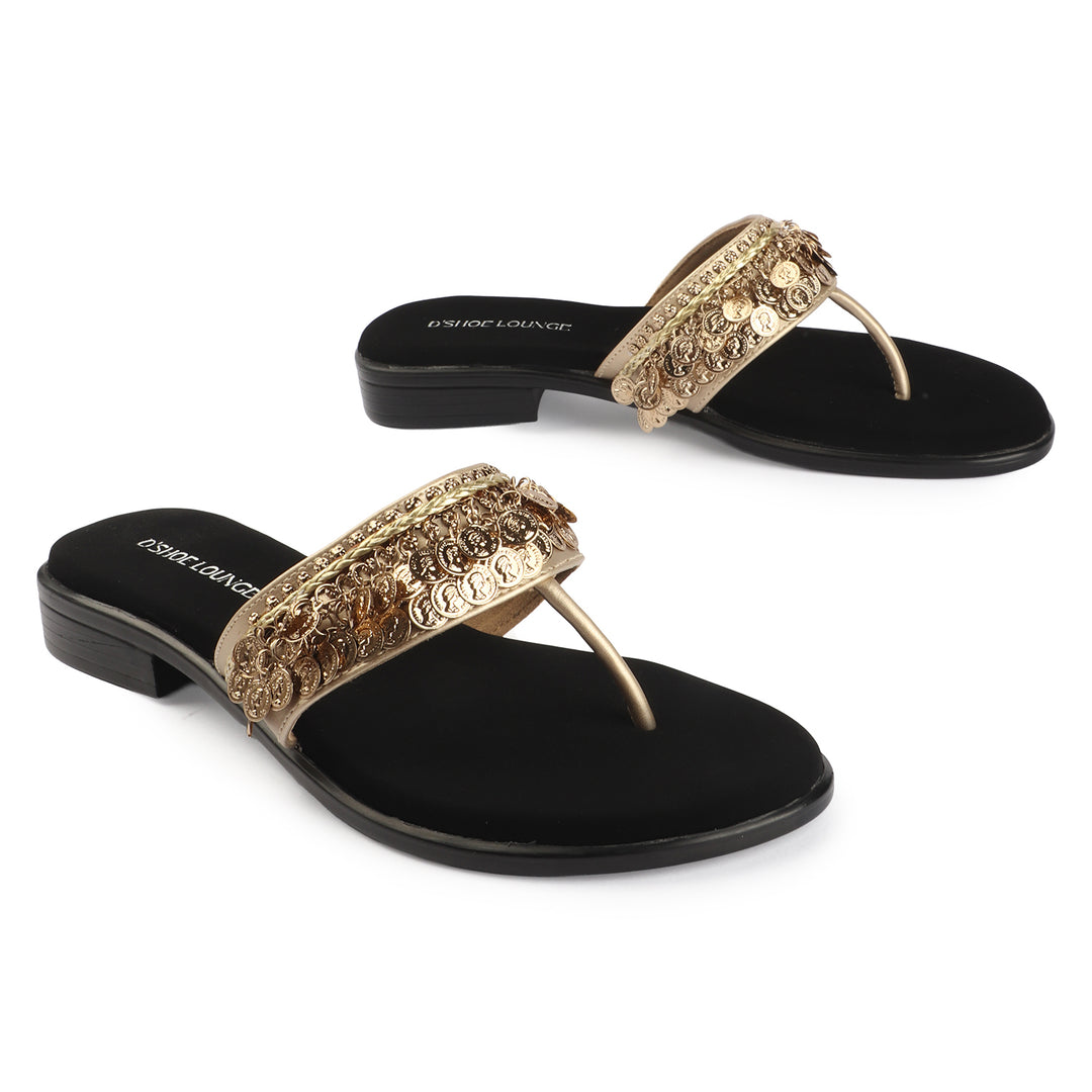 Ethnic Gold Coin Detail Flats